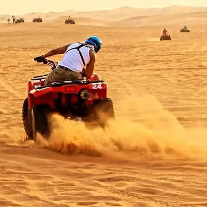 Feel the adrenaline rush as you command your own ATV quad bike across sweeping golden dunes, carving through the pristine desert terrain. Then buckle up for a heart-pounding spider car ride, navigating the vast open desert with wind in your hair and endless horizons stretching before you.